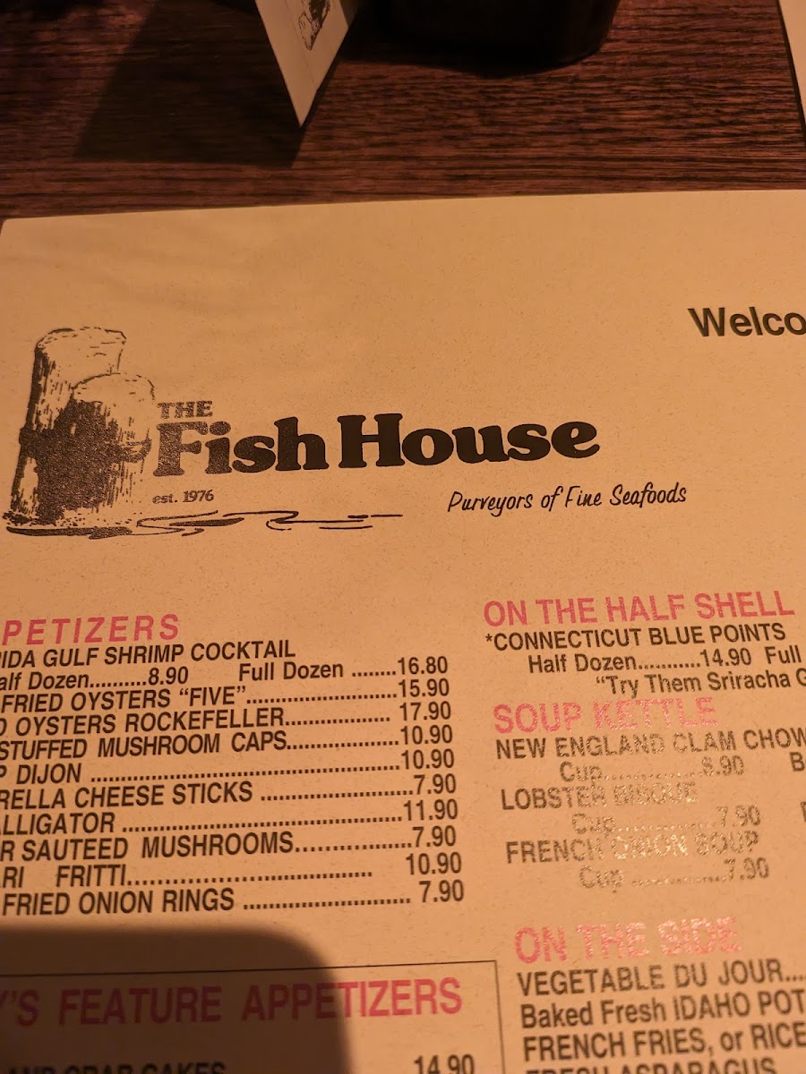Welcome to Fish House, where fresh seafood meets exceptional dining in Peoria, Illinois. Nestled at 4919 N University St, this beloved local gem brings a nostalgic charm, offering a delightful menu that promises to satisfy seafood lovers. The appetizer selection is particularly enticing, featuring grilled oysters with a savory compound butter and the ever-popular fried alligator, among other tempting options.